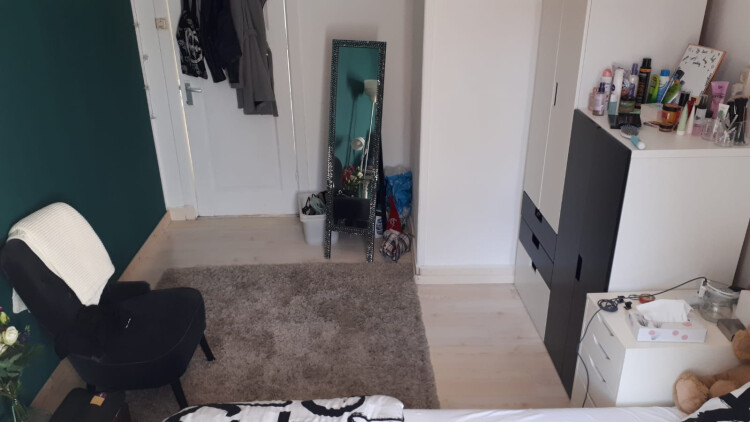 De slaapkamer is ongeveer 12 m2 en ongemeubileerd, de huurprijs ligt rond de 550,- inclusief g/w/l, internet en gemeentebelastingen.